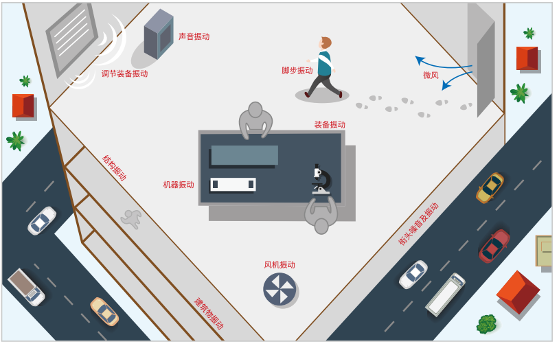 振動是指在基準位置上產(chǎn)生的機械式搖動,也就是說,構造物或地板等受動態(tài)外力之后,隨著時間推 移,開始從運動平衡位置產(chǎn)生重復運動的現(xiàn)象。在各種振動中,地基振動是我們能夠感覺到的較重振動,但也有很多我們在日常生活中難以感知的微細振動,這種微細振動會給半導體工程設備、 電子顯微鏡、精密測量器、 光學及光學相關機器之類對振動敏感的超精密設備性能帶來影響。